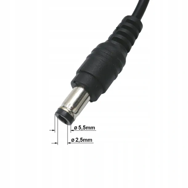 - Connecteur de sortie : DC 2,5×5,5 mm, droit, positif au centre