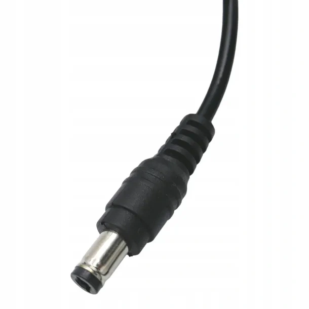 L'adaptateur est équipé d'un connecteur DC droit rond de dimensions 2,5×5,5 mm (positif au centre), garantissant la compatibilité avec une large gamme d'appareils 12V dotés d'une prise d'alimentation standard. La LED rouge signale le bon fonctionnement de l'appareil, permettant de vérifier instantanément si l'adaptateur est actif.