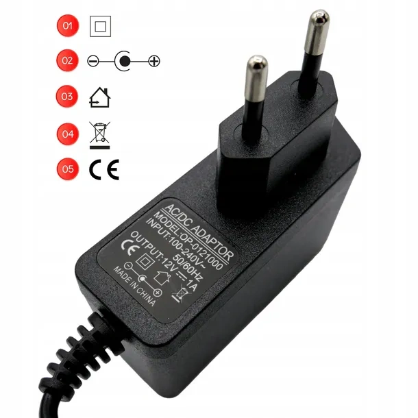 L'adaptateur secteur enfichable 12V 1A 12W est un transformateur AC/DC éprouvé destiné a l'alimentation d'appareils basse tension tels que les rubans LED, routeurs, caméras IP ou contrôleurs domotiques. Sa construction compacte enfichable permet de le brancher directement sur une prise 230V — sans câbles supplémentaires côté alimentation.