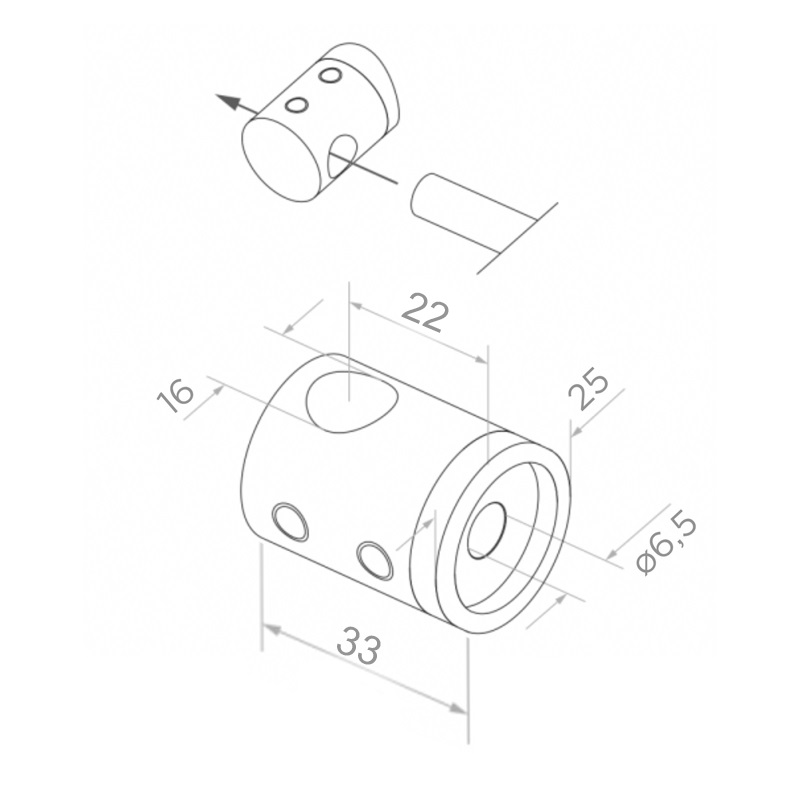 Attache traversante pour tige/tube ø 16 mm destinée au montage sur surfaces planes. Sert à raccorder les remplissages horizontaux ou verticaux de garde-corps avec des poteaux ou autres éléments de construction — apporte rigidité à toute la structure et assure un point de fixation esthétique et durable.