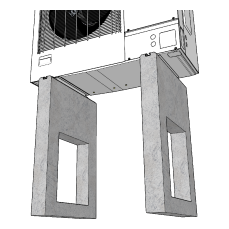 Waarom kiezen voor een ingegraven fundering? Montage van de buitenunit op grondniveau elimineert problemen met overmatig geluid en trillingen die worden overgedragen op de gevel. Het element is vervaardigd uit beton klasse C40/50 en garandeert uitzonderlijke sterkte en weerstand tegen weersomstandigheden gedurende vele jaren.