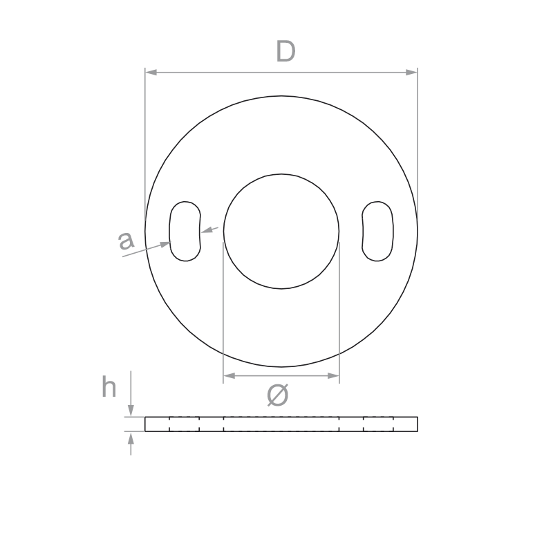 - Trous de fixation (a) : 2× oblong 11 × 20 mm