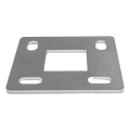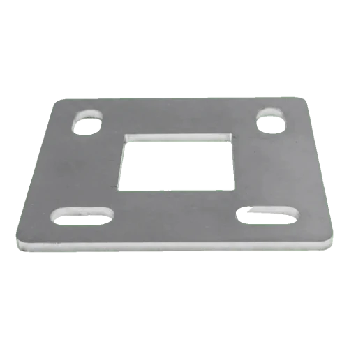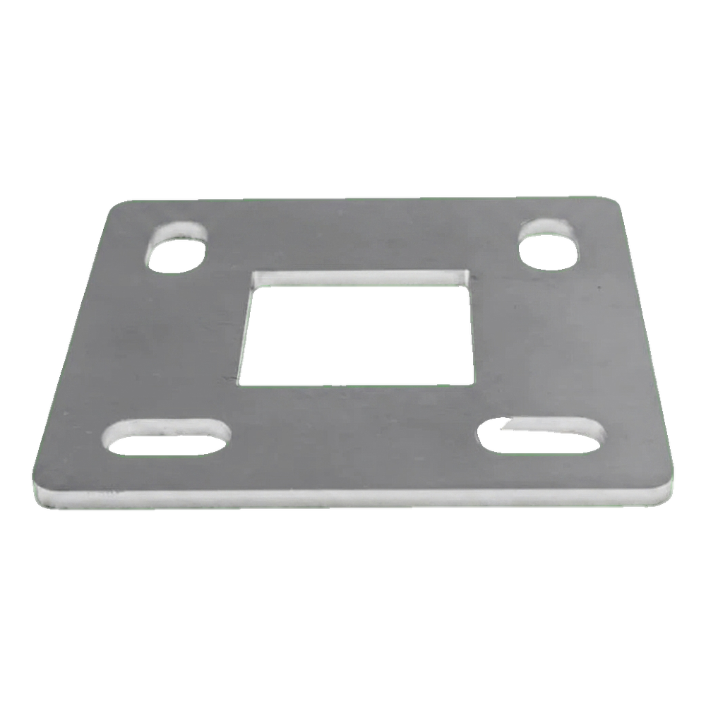 La base constitue un élément de construction clé de la balustrade inoxydable - correctement fixée, elle assure la stabilité et résistance de toute la construction. Le poteau de balustrade de profilé 40×40 mm s'insère dans l'orifice central et se soude en périphérie. La base se fixe au support à l'aide de vis d'ancrage à travers les orifices de montage ovales.