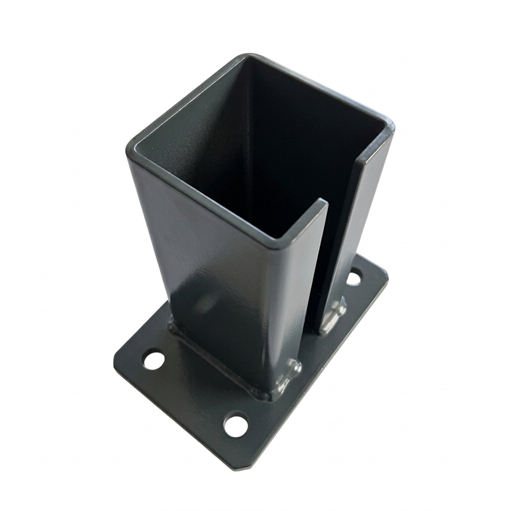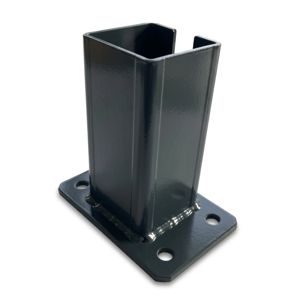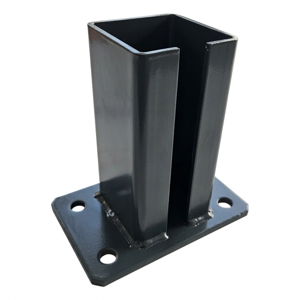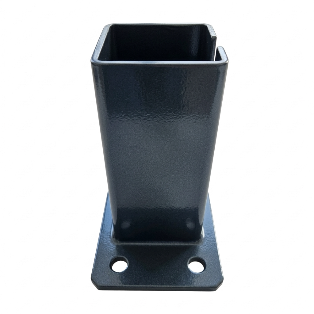 La base en acier (pied) pour poteau de portail et clôture 80×80 mm en couleur graphite anthracite RAL 7016 est un élément de fixation robuste permettant un montage rapide et sûr des poteaux profilés sur surfaces béton, murets et autres supports durcis. Grâce à sa finition thermolaquée en couleur RAL 7016, le produit assure un aspect esthétique et uniforme s'harmonisant parfaitement avec les clôtures panneaux et portails modernes dans la teinte anthracite la plus populaire — tout en offrant une protection anticorrosion efficace.