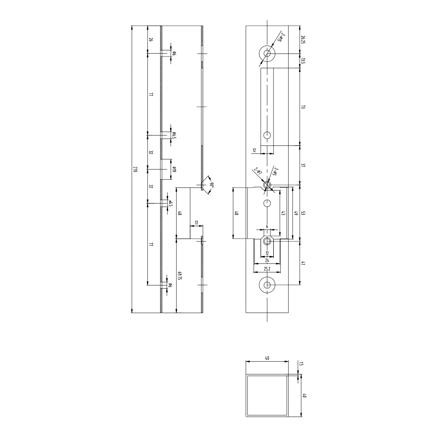 - Section du profilé : 40 × 40 mm