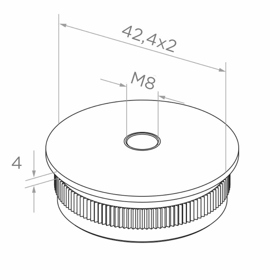 Le bouchon bombé à enfoncer est un élément de finition esthétique destiné à fermer les tubes de diamètre 42,4 × 2 mm, utilisés dans les systèmes de garde-corps et main-courantes. Grâce au filetage central M8, il permet le montage d'éléments supplémentaires, tels que poignées, boules décoratives ou raccords — ce qui en fait une solution non seulement décorative, mais aussi fonctionnelle.