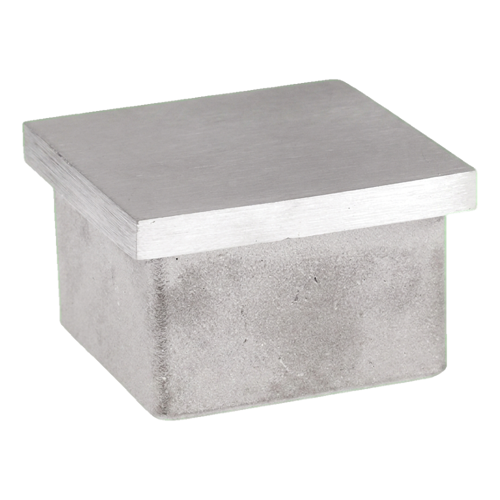 Bouchon à tête plate destiné au profilé carré 40×40×2 mm — finition esthétique et durable des mains courantes de balustrades en acier inoxydable. Le bouchon monté par enfoncement dans le profilé assure un montage rapide et sûr sans nécessité d'utiliser des raccords supplémentaires. Réalisé en acier inoxydable AISI 304 avec finition satinée, il s'harmonise parfaitement visuellement avec les systèmes de balustrades inoxydables et garantit une résistance durable à la corrosion.