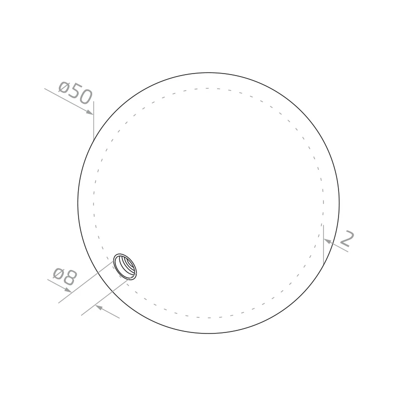 Boule à visser pour balustrade ø50 mm acier inoxydable AISI 304 satiné, filetage M8