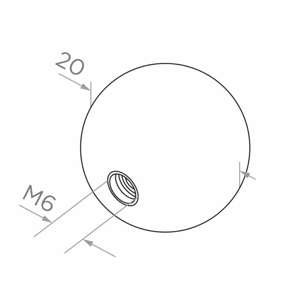 Boule de balustrade à visser pleine ø 20 mm, filetage M6, acier inoxydable satiné