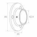 Élément réalisé en acier inoxydable AISI 304 avec finition satinée, ce qui garantit une haute résistance à la corrosion ainsi qu'un aspect esthétique et mat s'harmonisant parfaitement avec les balustrades modernes en acier inoxydable. La platine de montage de diamètre 85 mm possède 3 trous de fixation de diamètre 6,5 mm, assurant une fixation stable et uniforme au support. De plus, la vis de serrage intégrée (vis sans fin) permet de bloquer solidement le tube à l'intérieur du manchon.