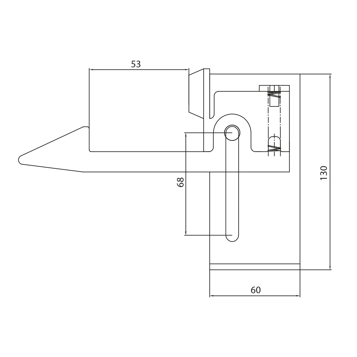 - Longueur du butoir (élément d'arrêt) : 50 mm (dimension constructive 53 mm)