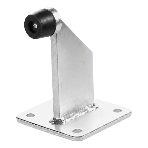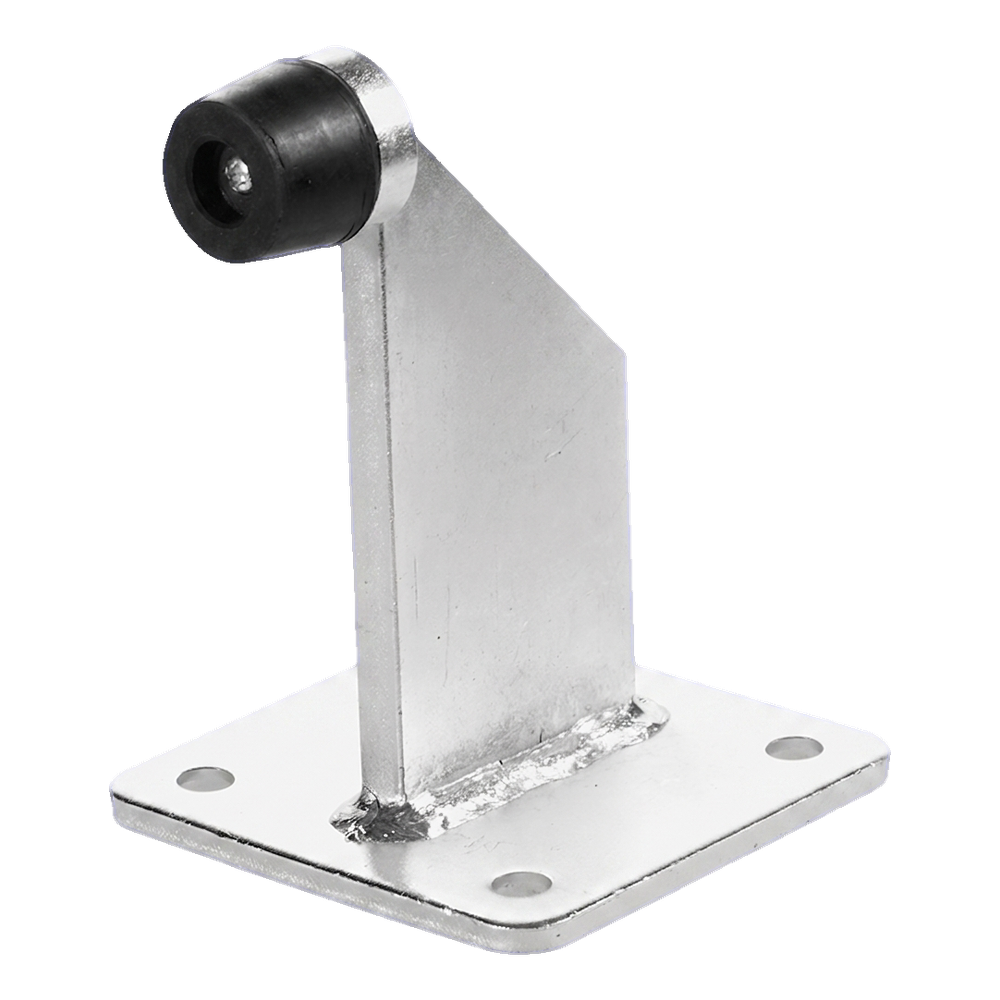 Le butoir est monté au sol par quatre trous de montage dans la plaque de base. Alternativement, l'élément peut également être soudé directement à la construction — ce qui donne de la flexibilité pour des réalisations atypiques. Dans le cas d'un portail battant à deux vantaux, il est recommandé d'utiliser deux butoirs — un pour chaque vantail.