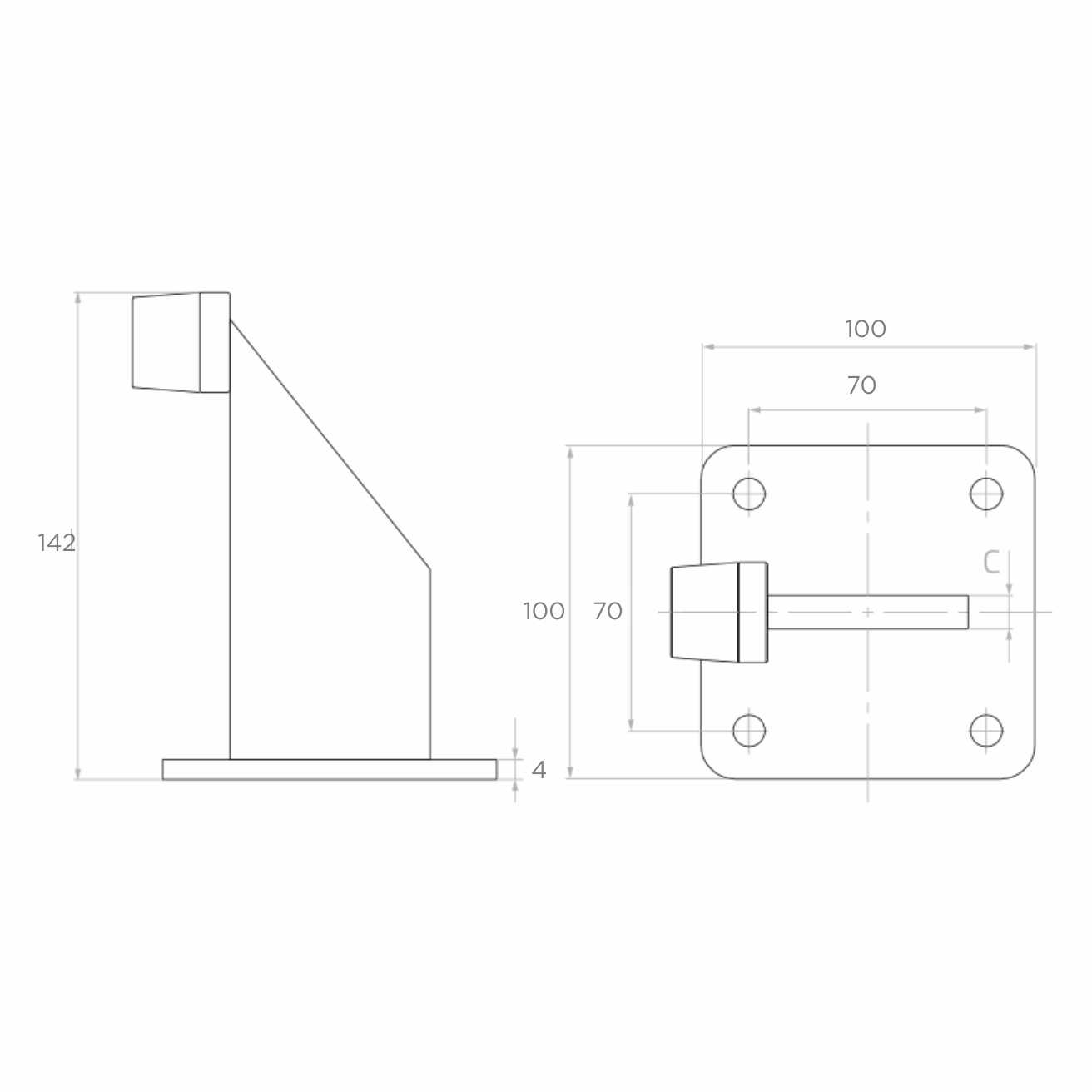 Butoir extérieur PSG vissé avec plaque 100×100 mm