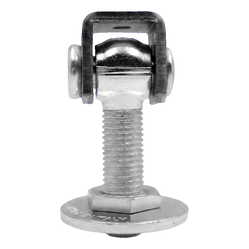 La charnière réglable COMUNELLO M20 est dédiée à la suspension de battants de portails battants sur poteaux de clôture en acier ou maçonnés. La base de montage d'un diamètre de 48 mm peut être soudée au poteau en acier ou fixée dans un élément ancré dans le poteau en béton. La construction solide en acier et l'articulation sphérique garantissent un fonctionnement de longue durée et sans panne même lors d'une utilisation intensive du portail.