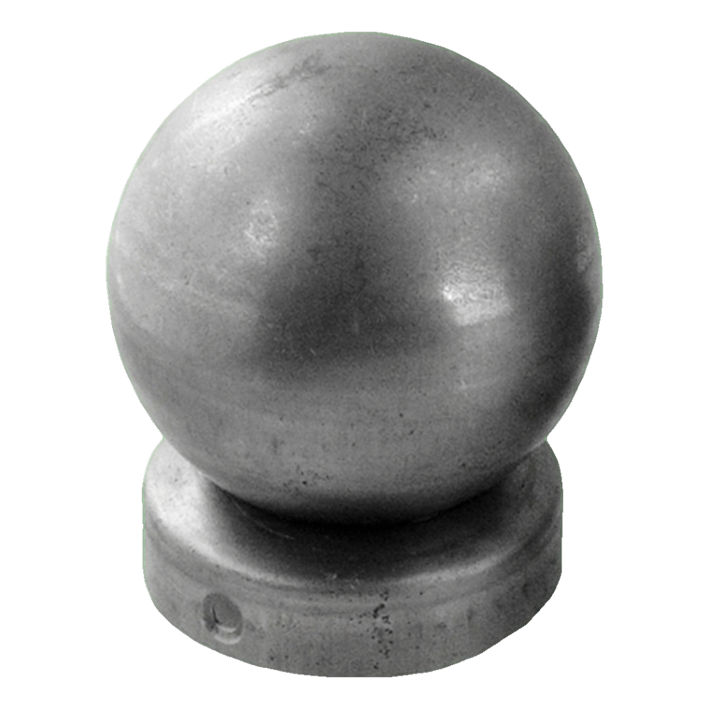 Capuchon de clôture en acier avec boule décorative Ø 60 mm destiné au montage sur des poteaux ronds d'un diamètre de Ø 60 mm (2"). Protection solide de la partie supérieure du poteau qui protège contre la corrosion causée par les précipitations et l'humidité, tout en donnant à la clôture une finition esthétique et décorative.