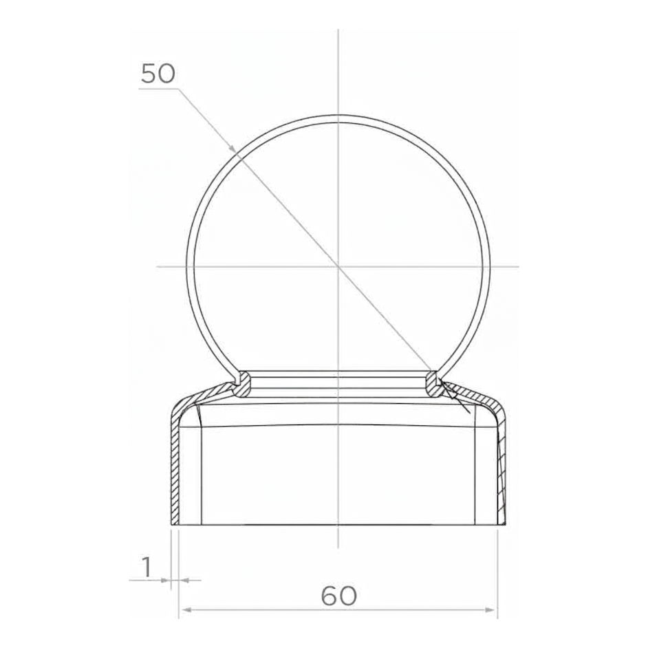 Capuchon d'escrime en acier avec boule 60×60 mm / ø 50 mm – brut