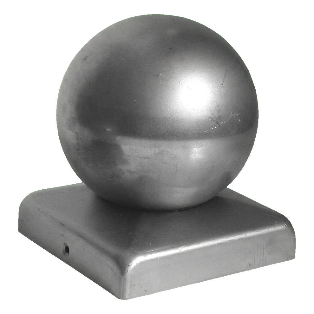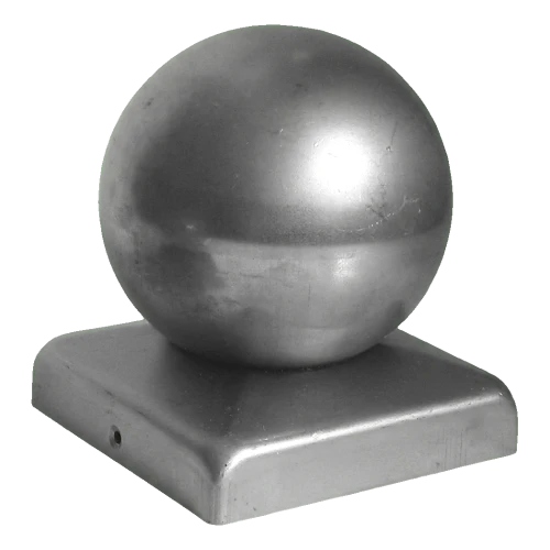 Chapeau de clôture en acier avec boule 120×120 mm / ø 100 mm – brut