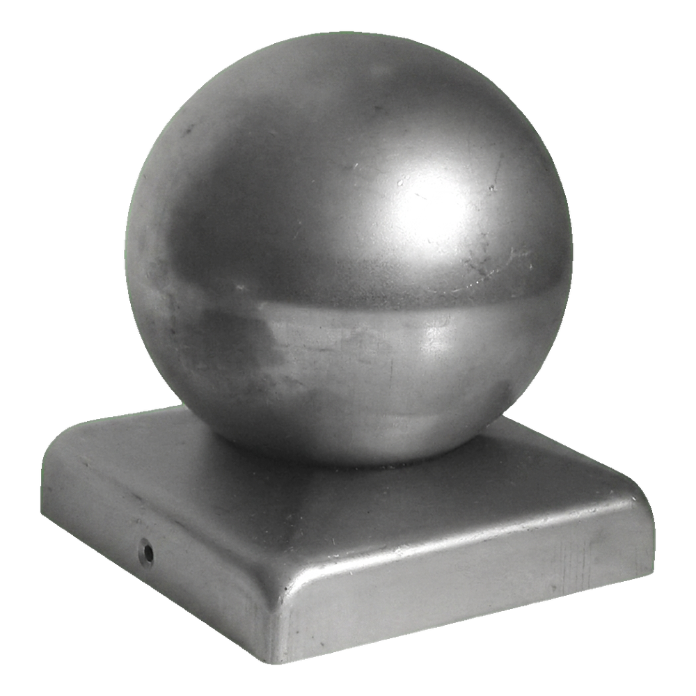 Chapeau de clôture en acier avec boule 70×70 mm / ø 60 mm – brut