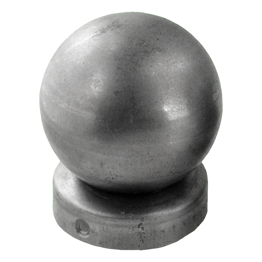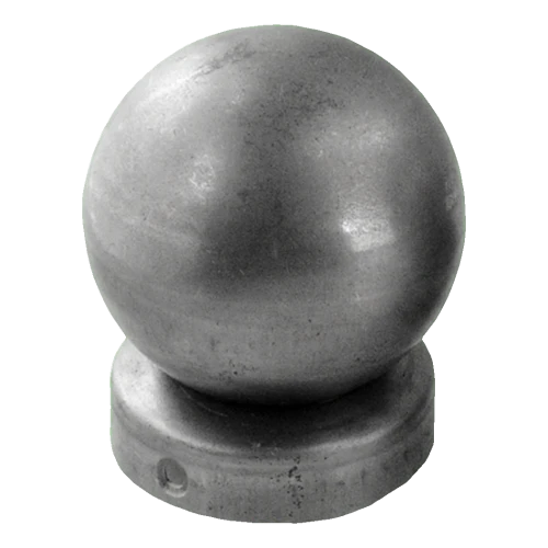 Chapeau de clôture en acier avec boule décorative destiné au montage sur poteaux ronds de diamètre Ø 42 mm (5/4"). La boule de diamètre Ø 60 mm donne à la clôture un aspect élégant et fini, tout en protégeant l'intérieur du poteau contre la pluie, la neige et les salissures. Produit livré à l'état brut — prêt à peindre, galvaniser ou autre finition en harmonie avec l'esthétique de l'ensemble de la clôture.