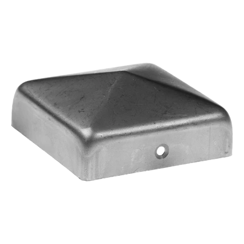 Chapeau de poteau en acier en forme d'enveloppe avec rebord haut destiné à être posé sur les poteaux de clôture de section 80×80 mm. Protège efficacement la partie supérieure du poteau contre la pluie, la neige et autres facteurs atmosphériques, prolongeant ainsi la durée de vie de l'ensemble de la clôture. Fabriqué en tôle d'acier d'épaisseur 1 mm et protégé par un revêtement galvanisé — garantit une résistance à la corrosion de plusieurs années sans nécessité de peinture supplémentaire.