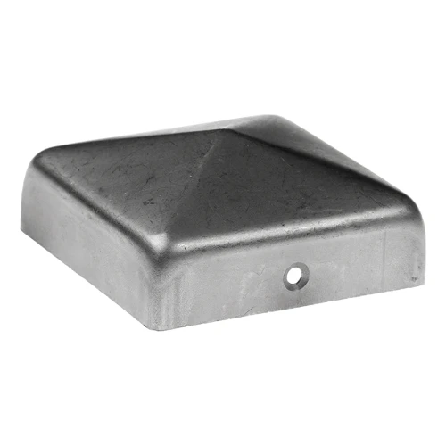 Chapeau d'enveloppe en acier avec rebord haut destiné à être installé sur des poteaux de clôture de section 20×20 mm. Il protège efficacement l'extrémité du poteau contre la pluie, la neige et la corrosion, prolongeant la durée de vie de toute la structure de clôture. Produit livré à l'état brut — permet la finition par vos soins (peinture en poudre, laquage ou galvanisation), ce qui vous permet d'assortir la couleur du chapeau à celle de la clôture.