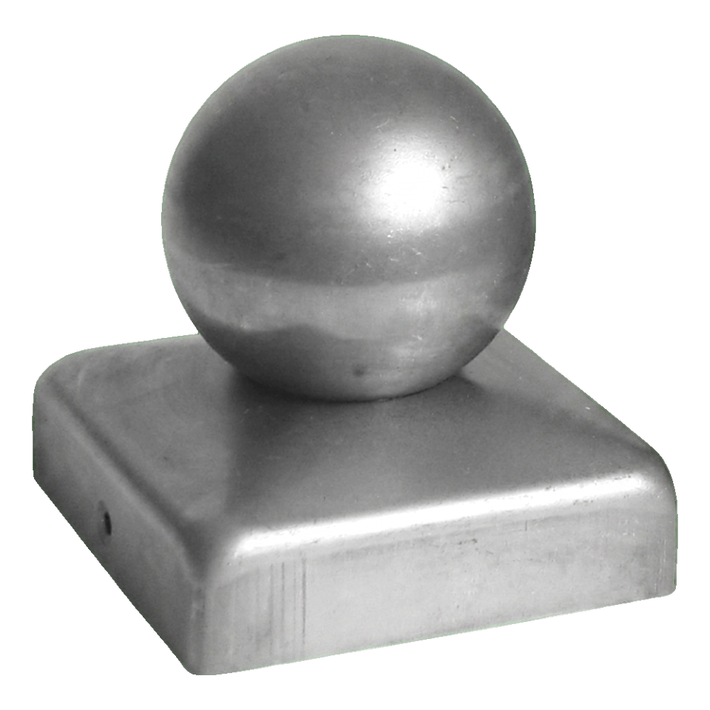 Chapeau en acier pour poteau de clôture 100×100 mm avec boule Ø 60 mm – brut