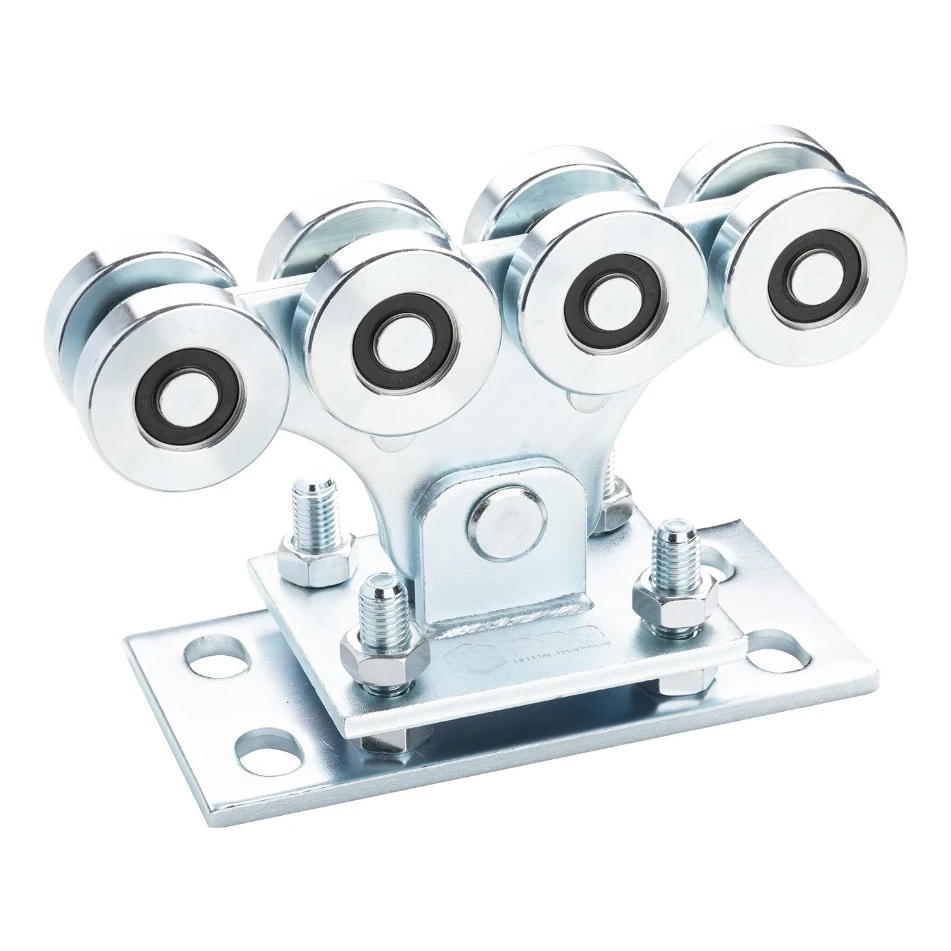 Le chariot de roulement 68 est un élément clé des systèmes de portails coulissants 68×68, responsable du guidage fluide, silencieux et stable du vantail sur le rail de roulement. Équipé de 8 galets en acier répartis sur deux niveaux, il assure une répartition uniforme des charges et élimine les forces obliques agissant sur les roulements — ce qui se traduit directement par une durée de vie prolongée et une réduction du bruit lors de l'utilisation.