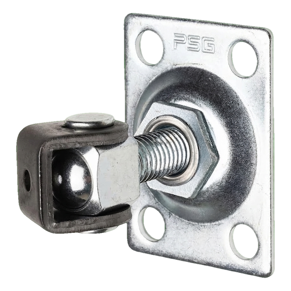 La construction en acier de la charnière garantit une haute résistance mécanique et une résistance à l'usure, tandis que la plaque de montage rectangulaire avec quatre trous assure une fixation stable et sûre au poteau ou au cadre. Le produit de marque PSG est destiné à un usage extérieur — il convient pour les clôtures, portillons de propriété et portails battants.