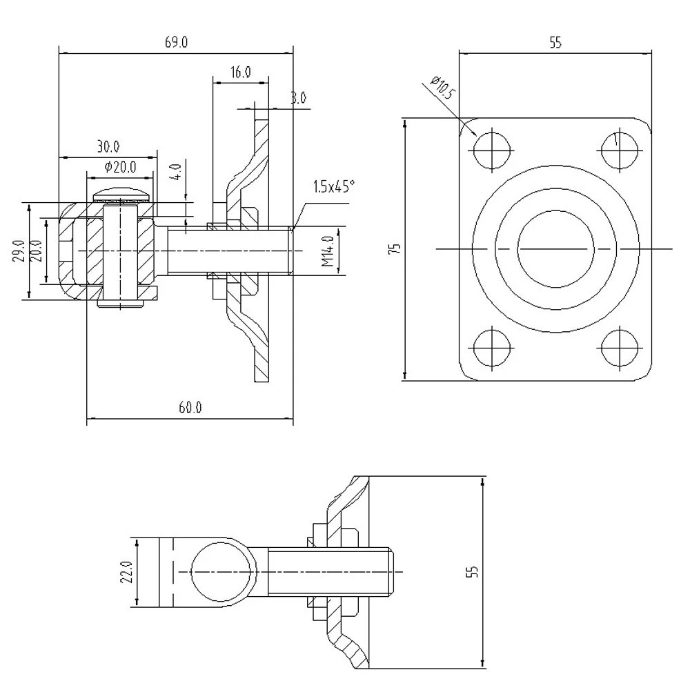 - Dimensions de la plaque (plaque de montage) : 75 × 55 mm