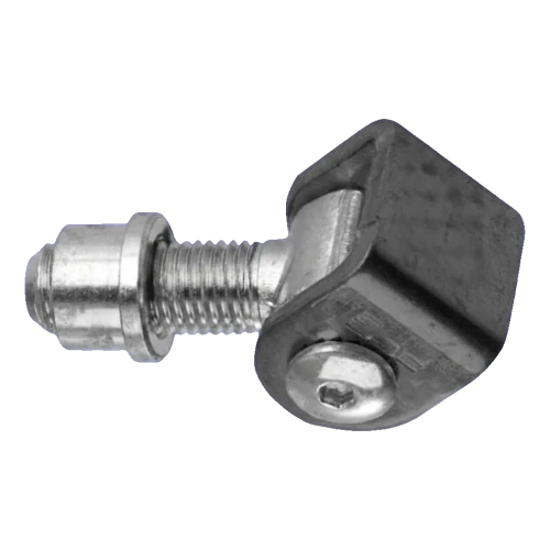 Grâce à l'écrou sur la tige M12, la charnière peut être réglée même après la fin du montage — par exemple quand la construction s'affaisse sous le poids ou que le métal change de dimensions sous l'effet de températures extrêmes. Il suffit de serrer ou desserrer l'écrou pour rétablir le bon positionnement du vantail. La charge admissible de la paire de charnières sur un vantail de 2 m de longueur est de 40 kg.