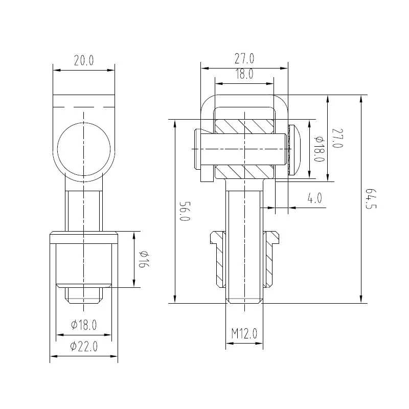 - Longueur utile de la vis (depuis l'axe du goupille) : 56 mm