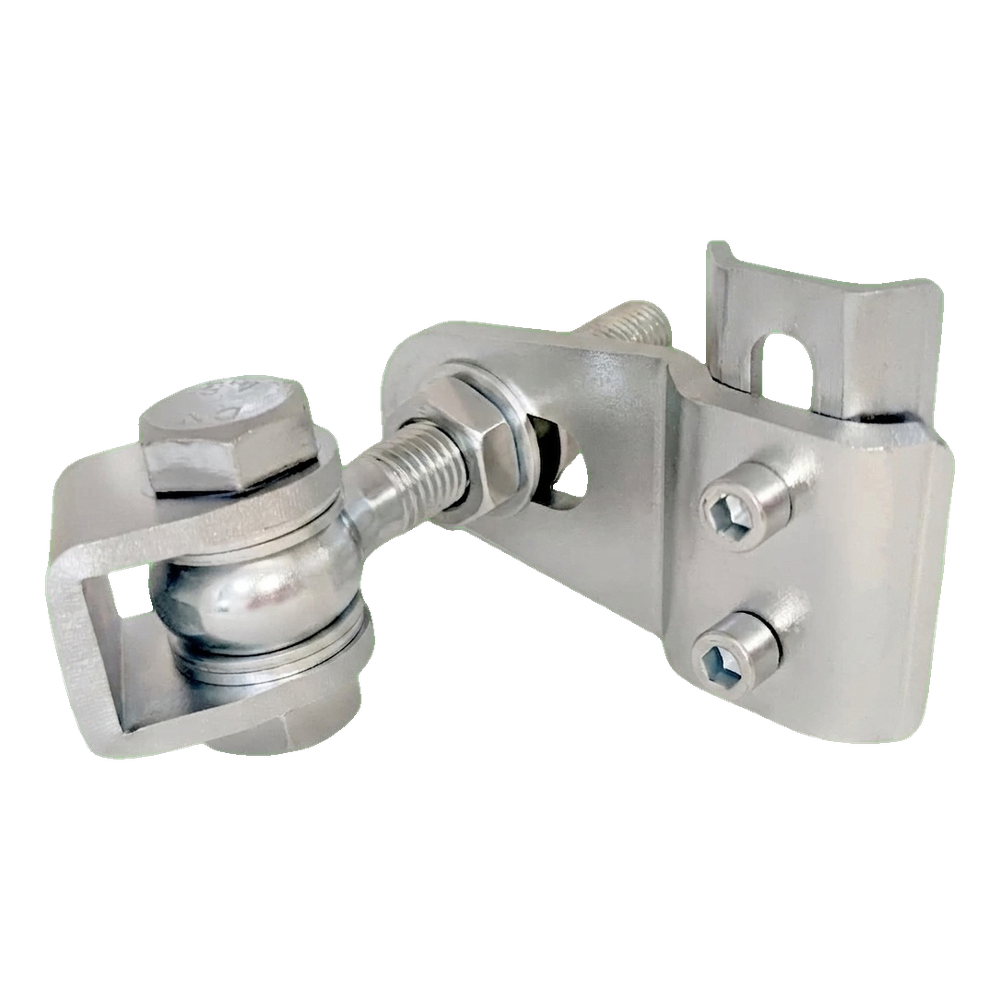 La plaque de fixation avec des trous pour les vis à six pans creux permet le montage aussi bien directement sur un poteau en acier que sur une plaque d'ancrage supplémentaire – grâce à cela, la charnière est compatible avec de nombreux types de constructions de clôtures. Le roulement à billes élimine le frottement métal-métal, ce qui se traduit par un fonctionnement sans défaillance et silencieux pendant toute la période d'exploitation.