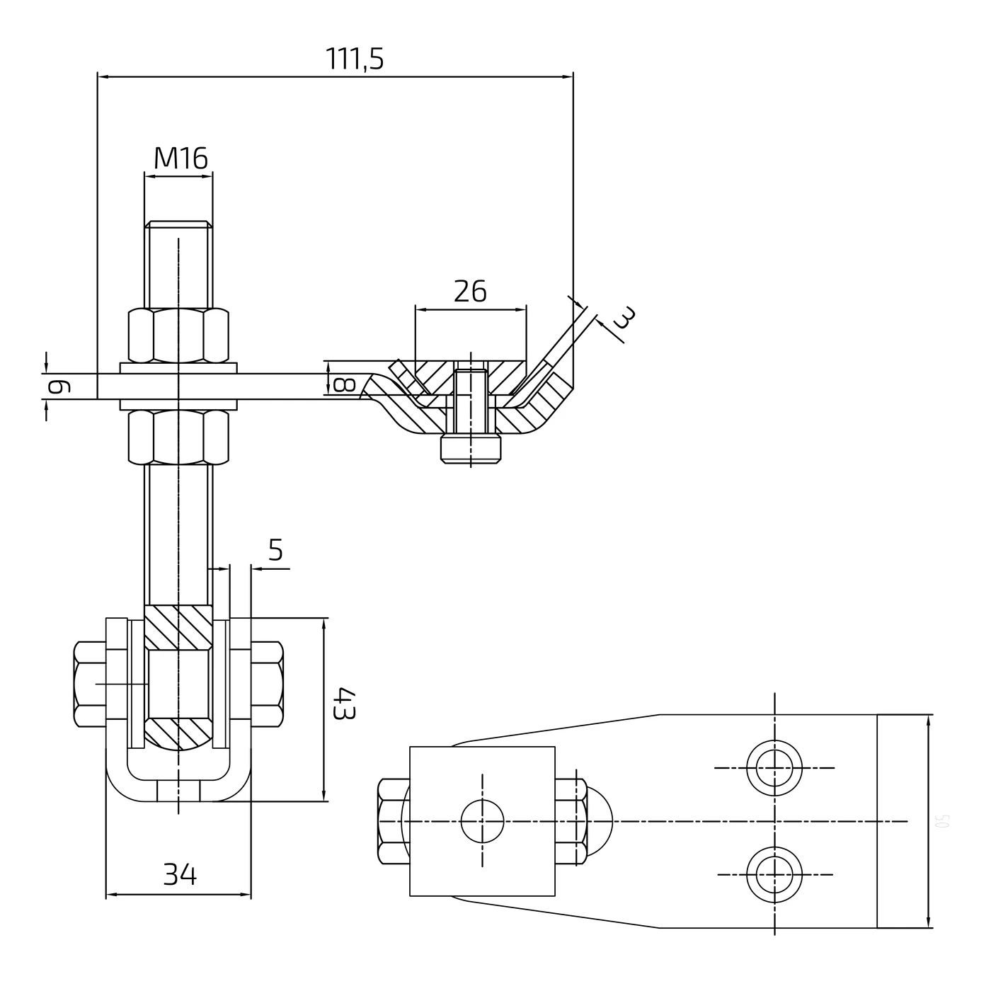 La charnière est destinée principalement aux portails battants et portillons dans les systèmes de clôtures de propriétés, industrielles et de bâtiments publics. Le réglage sur le filetage M16 permet de corriger le niveau du battant sans démonter toute la charnière – il suffit de desserrer l'écrou de blocage, de régler la position souhaitée et de resserrer. Pour les équipes d'installation, cela signifie un temps de montage plus court ainsi que la possibilité d'un ajustement facile en cas de tassement des poteaux ou de changement de géométrie du portail après une période d'utilisation prolongée.