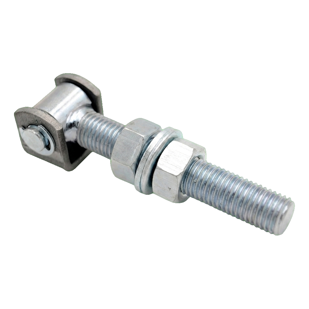 Le filetage M20 avec écrous de contre permettent un réglage précis de la hauteur et de la position du battant sans nécessité de démonter la charnière. Ceci est particulièrement important dans des conditions de températures variables, lorsque les constructions métalliques travaillent sous l'effet de la dilatation thermique. Le réglage permet également une correction facile de l'affaissement du battant, qui peut apparaître avec le temps dans le cas de portails lourds.