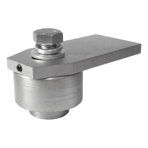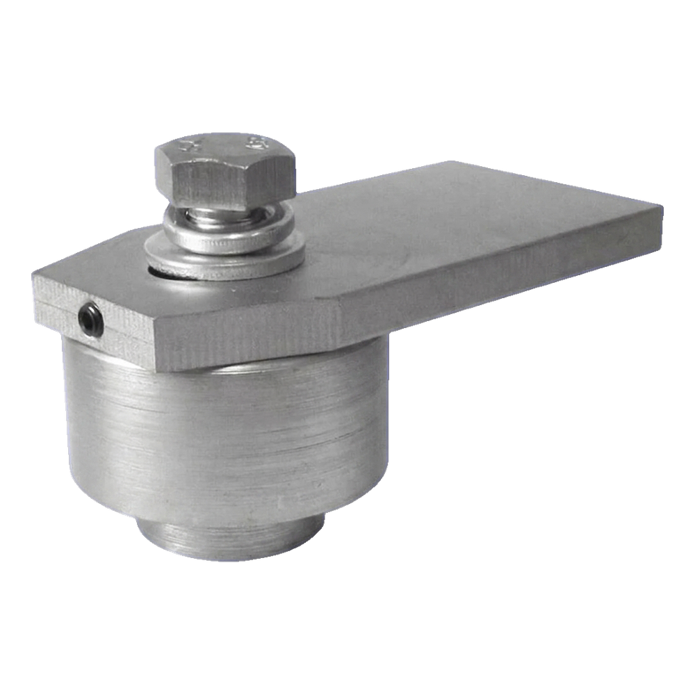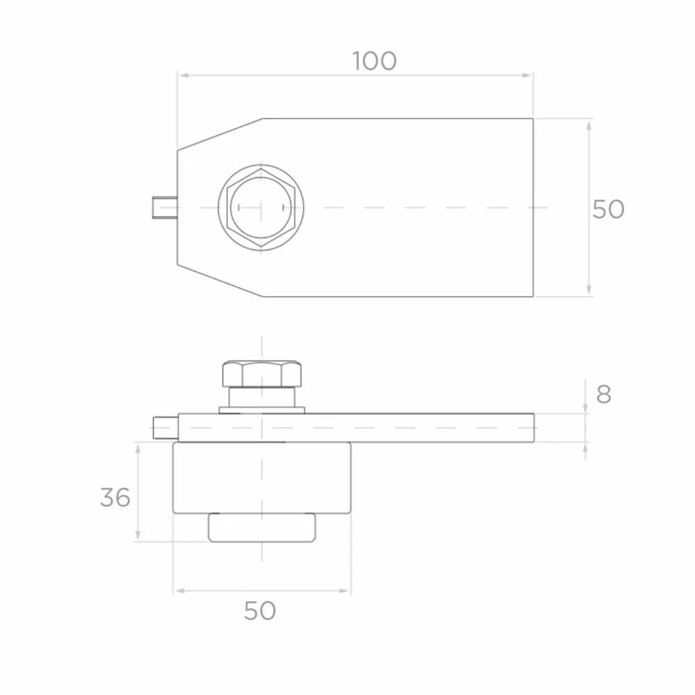 La charnière se monte comme élément supérieur du vantail de portail ou de portillon. La plaque de fixation plate de dimensions 100 × 50 mm permet un vissage stable sur le poteau ou le cadre. La construction à roulement minimise la friction et assure un fonctionnement silencieux et régulier du vantail — ce qui est particulièrement important pour les portails de grande masse exploités plusieurs fois par jour.