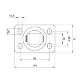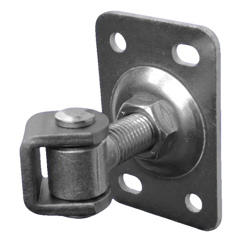 La base avec quatre trous de montage type haricot (ovales) permet la correction de la position de la charnière dans le plan vertical et horizontal, ce qui facilite considérablement le travail sur des poteaux de clôture inégaux. Produit destiné à l'usage extérieur — idéal pour les clôtures, portails d'entrée et portillons de propriété.