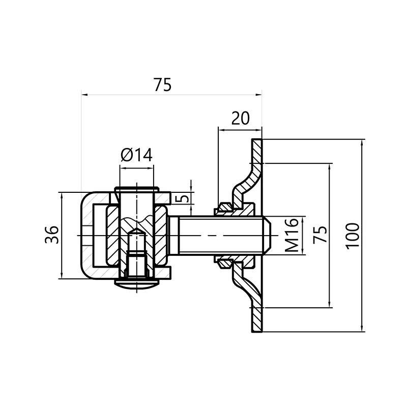 Charnière réglable de portail PSG M16 avec plaque 100×100×4 mm galvanisée