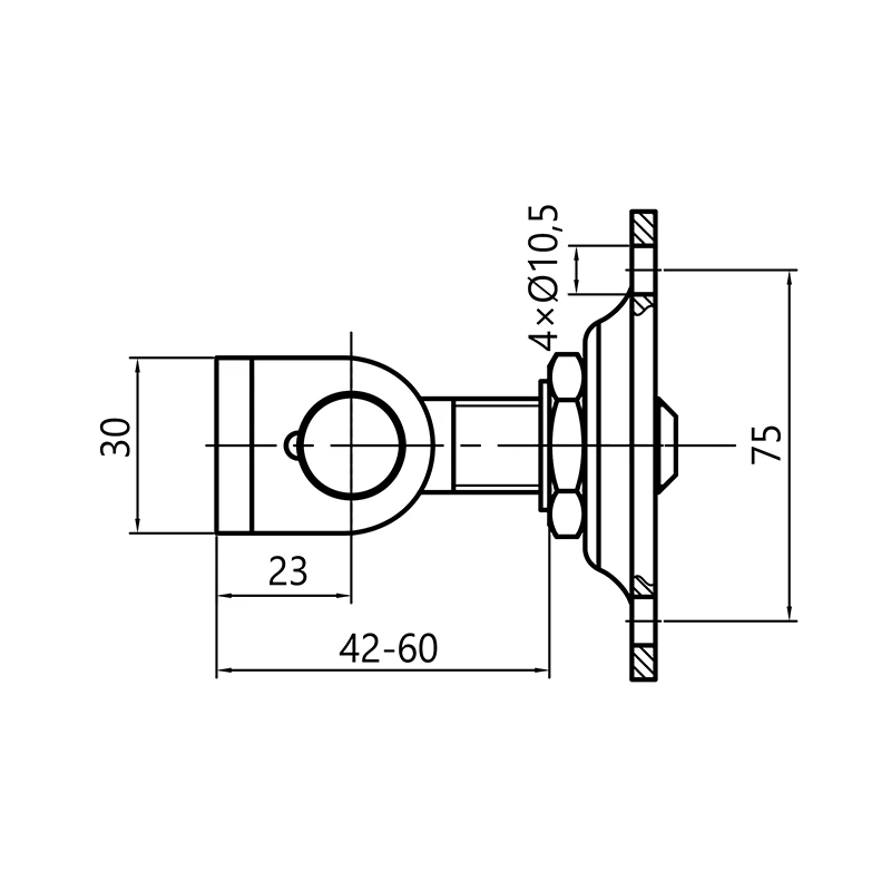 - Montage rapide — la plaque avec 4 trous de montage Ø10,5 mm avec entraxe 75×75 mm permet un vissage sûr sur le poteau