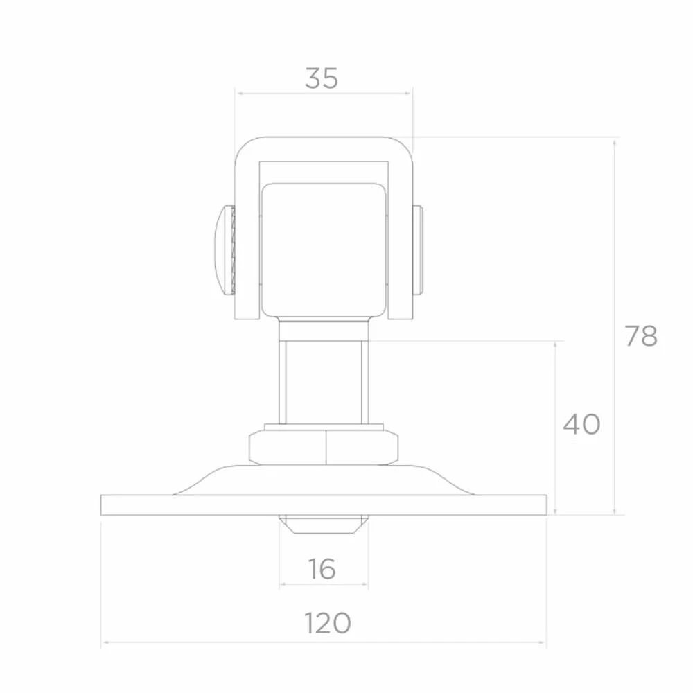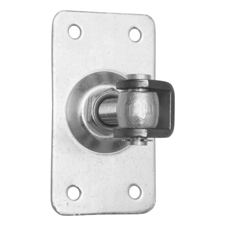 Charnière réglable en acier avec vis M16 et écusson rectangulaire 120×75 mm — solution fiable pour le montage de portails battants et portillons. La surface galvanisée garantit une résistance à la corrosion de plusieurs années en conditions extérieures, et le mécanisme de réglage intégré permet de corriger le positionnement du vantail à tout moment — même après la fin du montage.