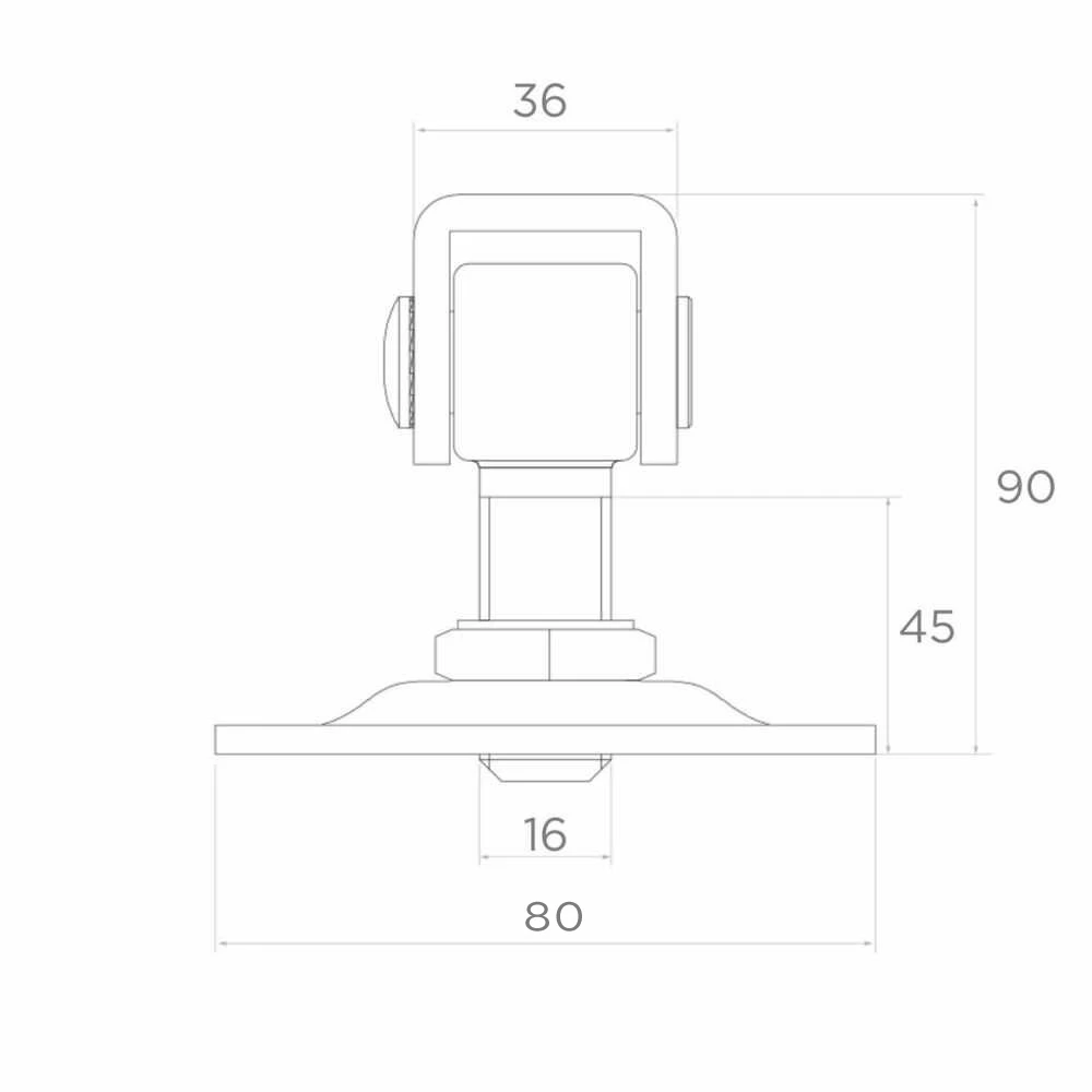 La plaque décorative de dimensions 80×80 mm avec quatre trous de montage assure un aspect esthétique et une fixation solide au poteau. L'épaisseur de tôle de la plaque de 3 mm garantit la rigidité et la fiabilité durable de la connexion. La charge admissible d'une paire de charnières sur un vantail de 2 m de longueur est de 65 kg.