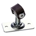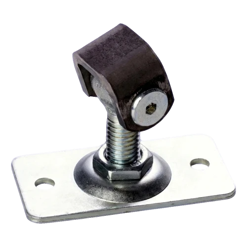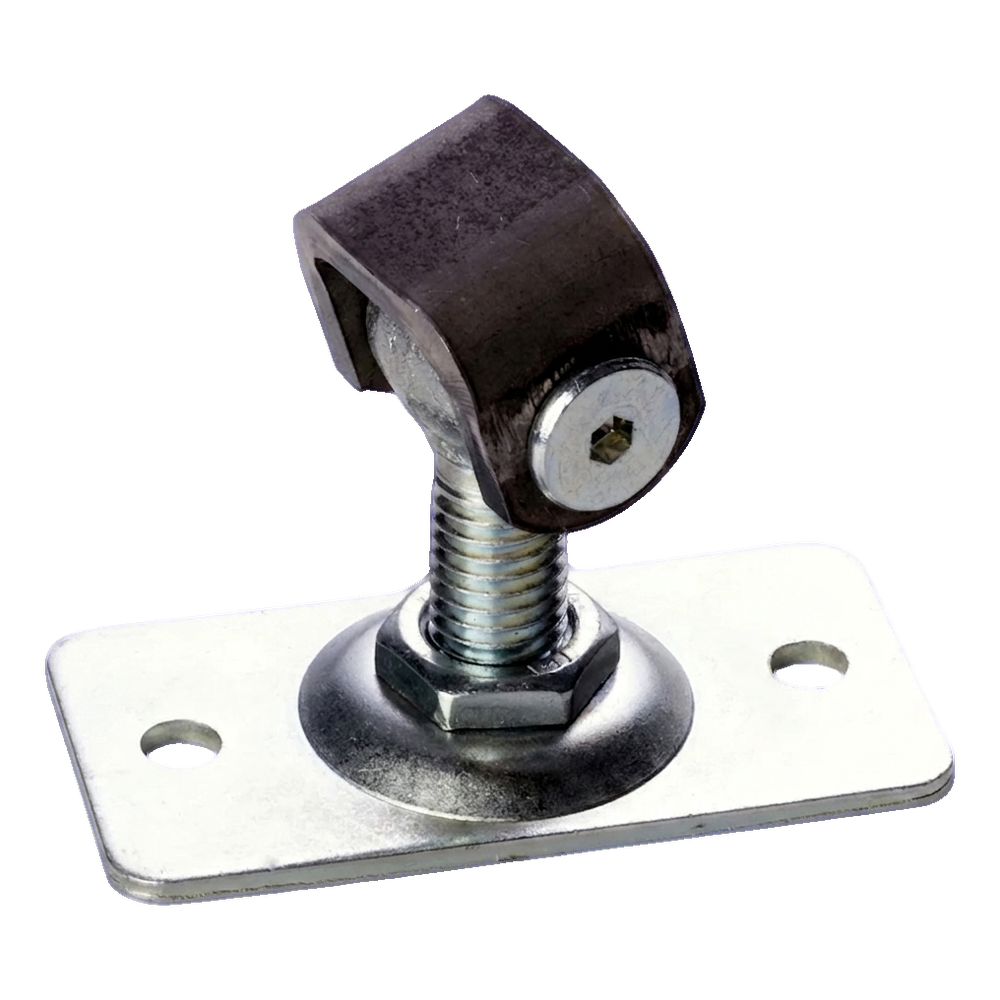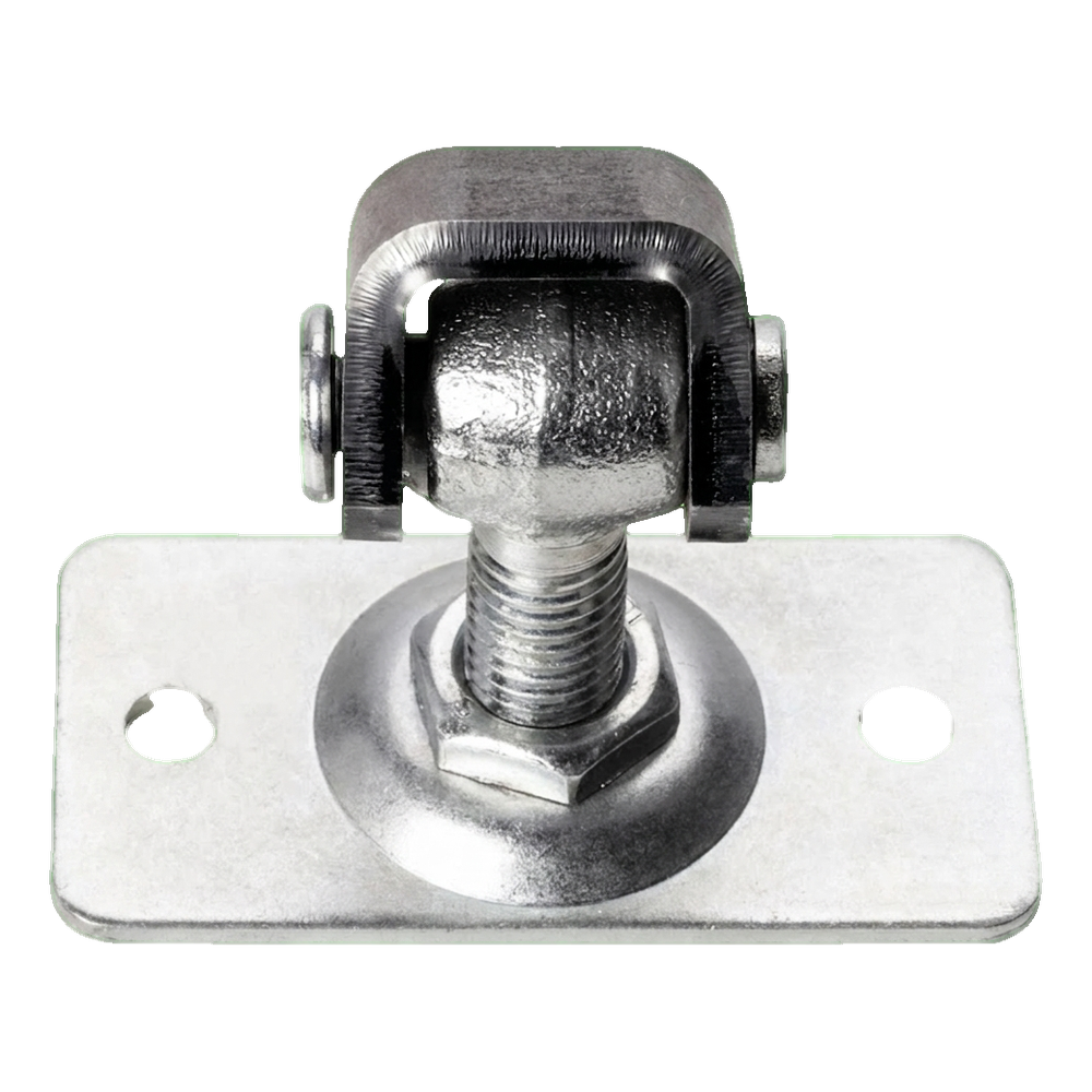 La plaque rectangulaire avec quatre trous de montage assure une fixation stable et sûre au poteau ou au cadre. La vis filetée M12 permet un réglage fluide de l'extension dans la plage 38–55 mm, donnant à l'installateur un contrôle total sur le positionnement du portillon par rapport au poteau. L'œil de la charnière tourne librement sur l'axe du pivot, assurant un fonctionnement fluide du vantail.