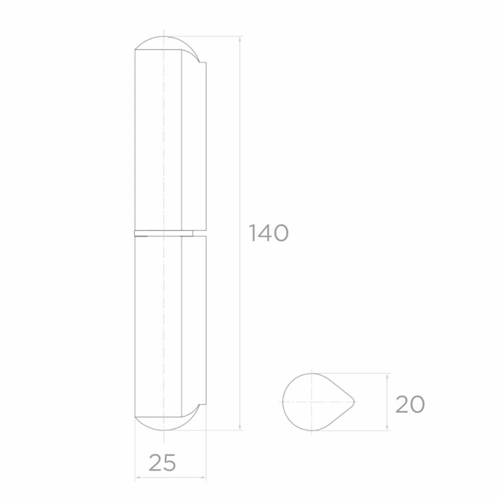 La charnière roulée à souder PSG aux dimensions D20 × H140 × L25 mm est un élément solide destiné au montage de portails et portillons. Fabriquée en acier de haute qualité, elle garantit durabilité, résistance aux charges et fonctionnement sans défaillance pendant des années. Le profil en goutte d'eau assure un ancrage stable après soudage sur la structure porteuse, et la construction roulée permet un mouvement fluide du vantail de portail sans à-coups ni frottement excessif.