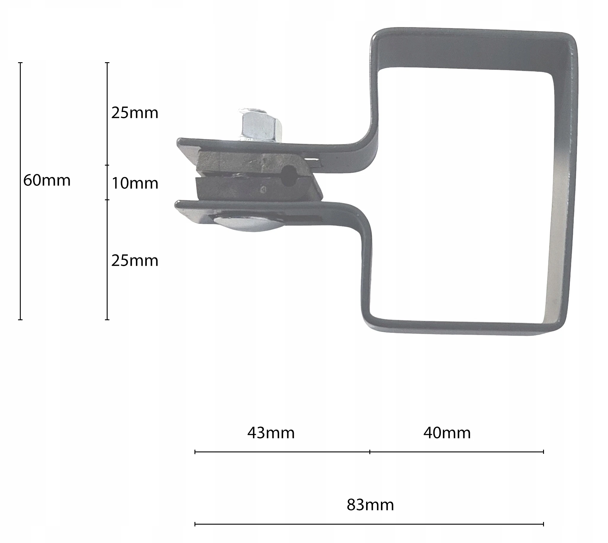 Le support de panneau de clôture 40x60 est un élément structurel robuste pour le montage de panneaux de clôture sur des poteaux de 40x60 mm.
