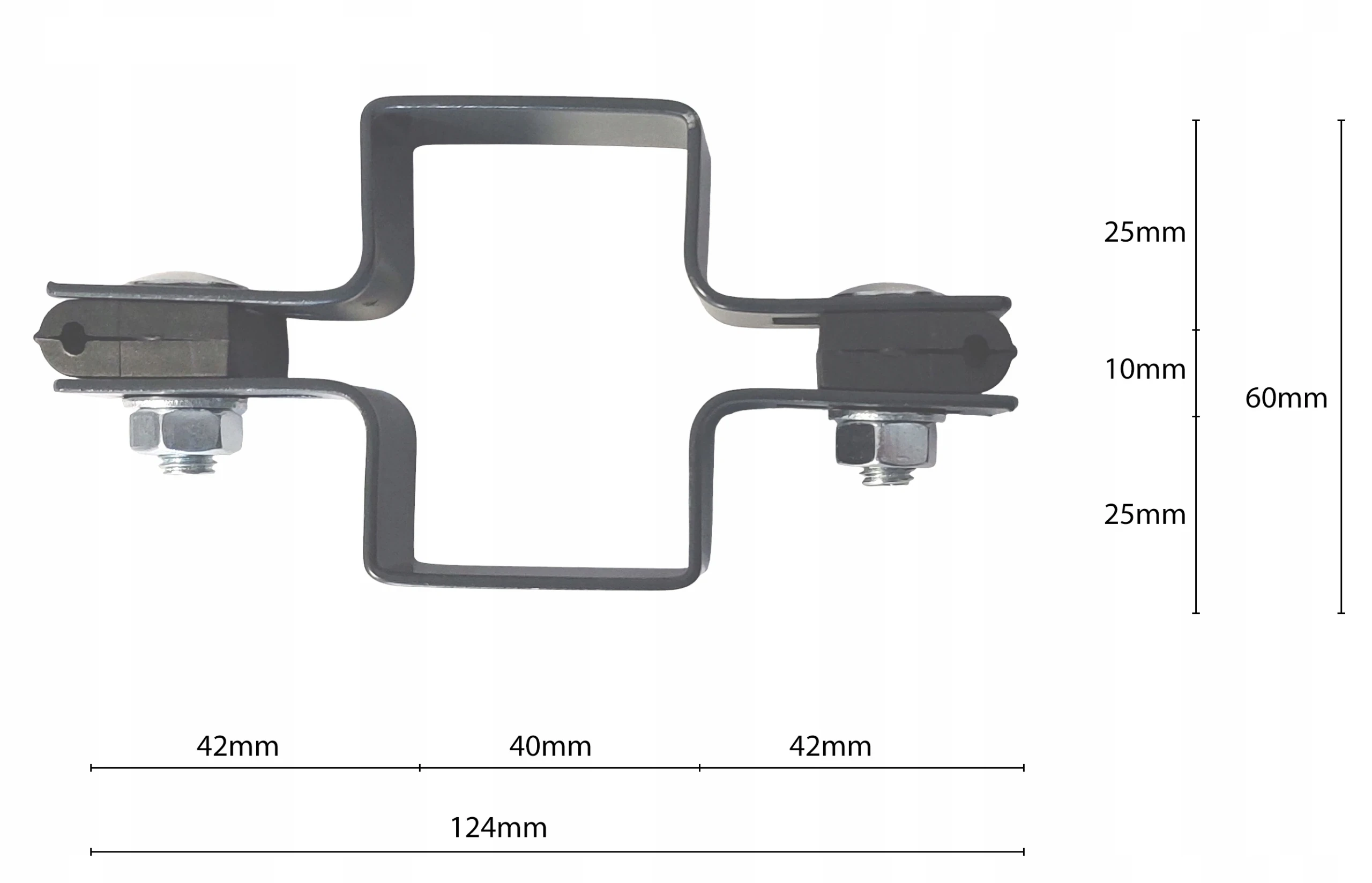Le collier intermédiaire 40x60 mm est un élément de construction fiable servant au montage de panneaux de clôture sur des poteaux de section 40x60 mm.