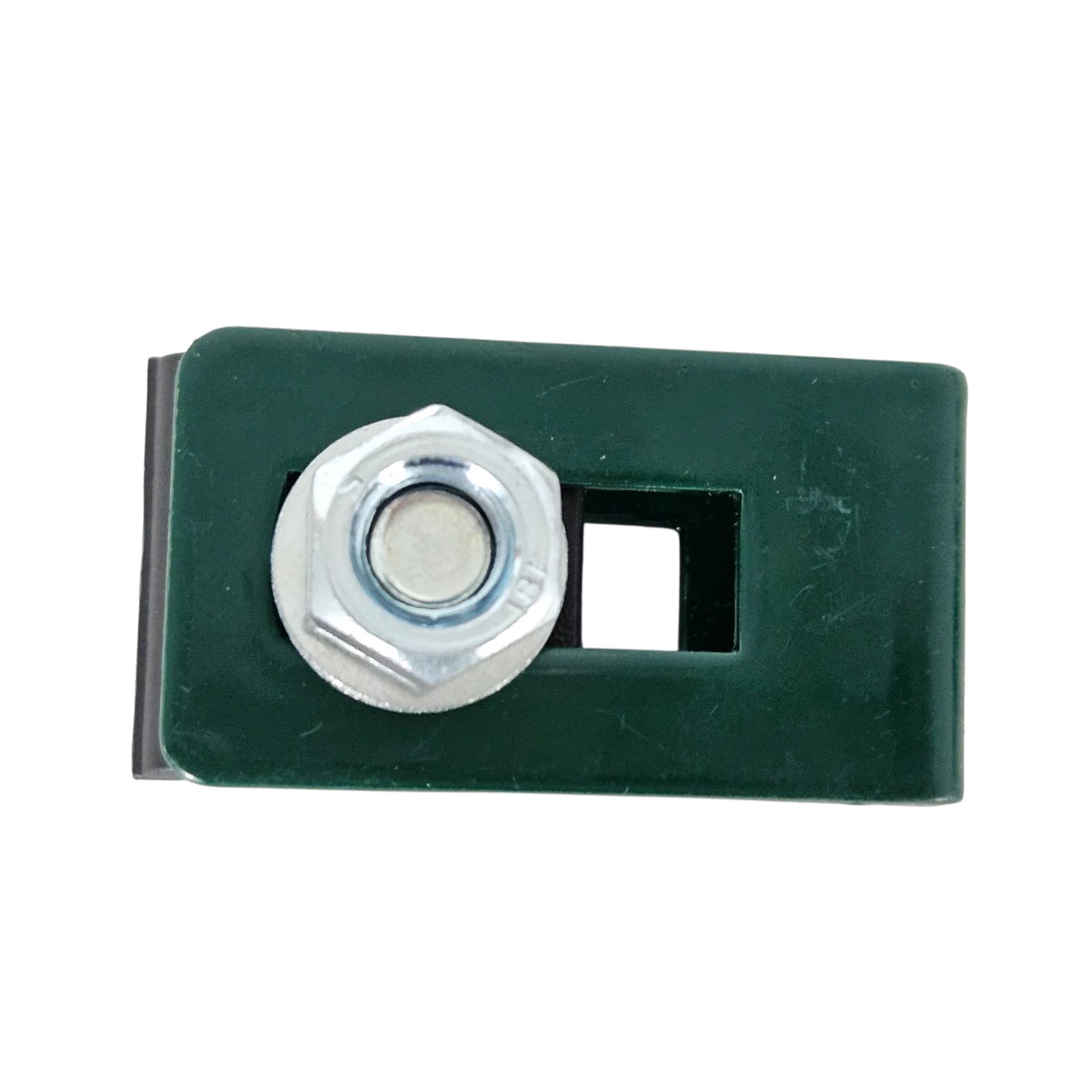 Fabriqué en acier galvanisé de haute qualité, thermolaqué en vert, résistant aux conditions atmosphériques et aux dommages mécaniques. Grâce à l'orifice de montage en forme de haricot, il permet le réglage de la position.
