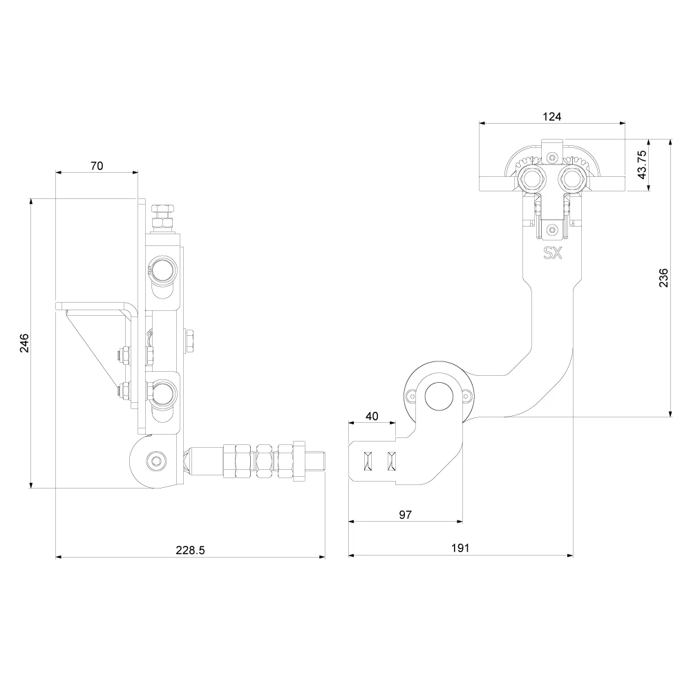 - Portée du bras jusqu'à l'axe de rotation : 236 mm