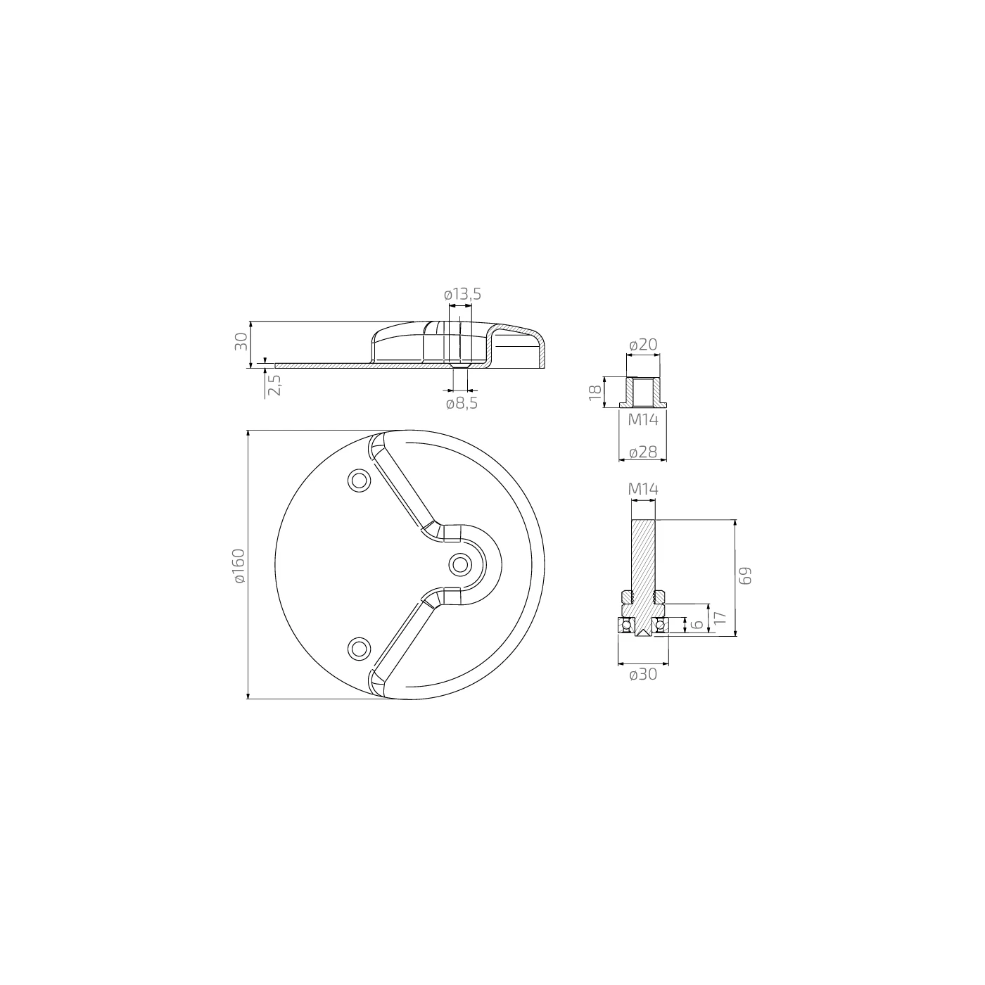 Dans l'ensemble : plaque d'amortisseur rond ø160 mm + tige de montage avec manchon fileté M14.