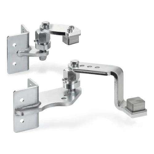 Solution dédiée aux entreprises d'installation réalisant le montage de portails sur des allées en pente et terrains irréguliers. La vis excentrique élimine la nécessité de corrections multiples de réglage — un seul serrage suffit pour un réglage précis de l'angle et du niveau du vantail.