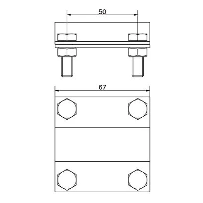 Les dimensions extérieures du connecteur sont de 50 × 67 mm, ce qui garantit une construction compacte tout en conservant une fonctionnalité complète. La taille réduite facilite l'installation dans des espaces restreints, par exemple dans des regards de visite ou à proximité d'une barre de mise à la terre.