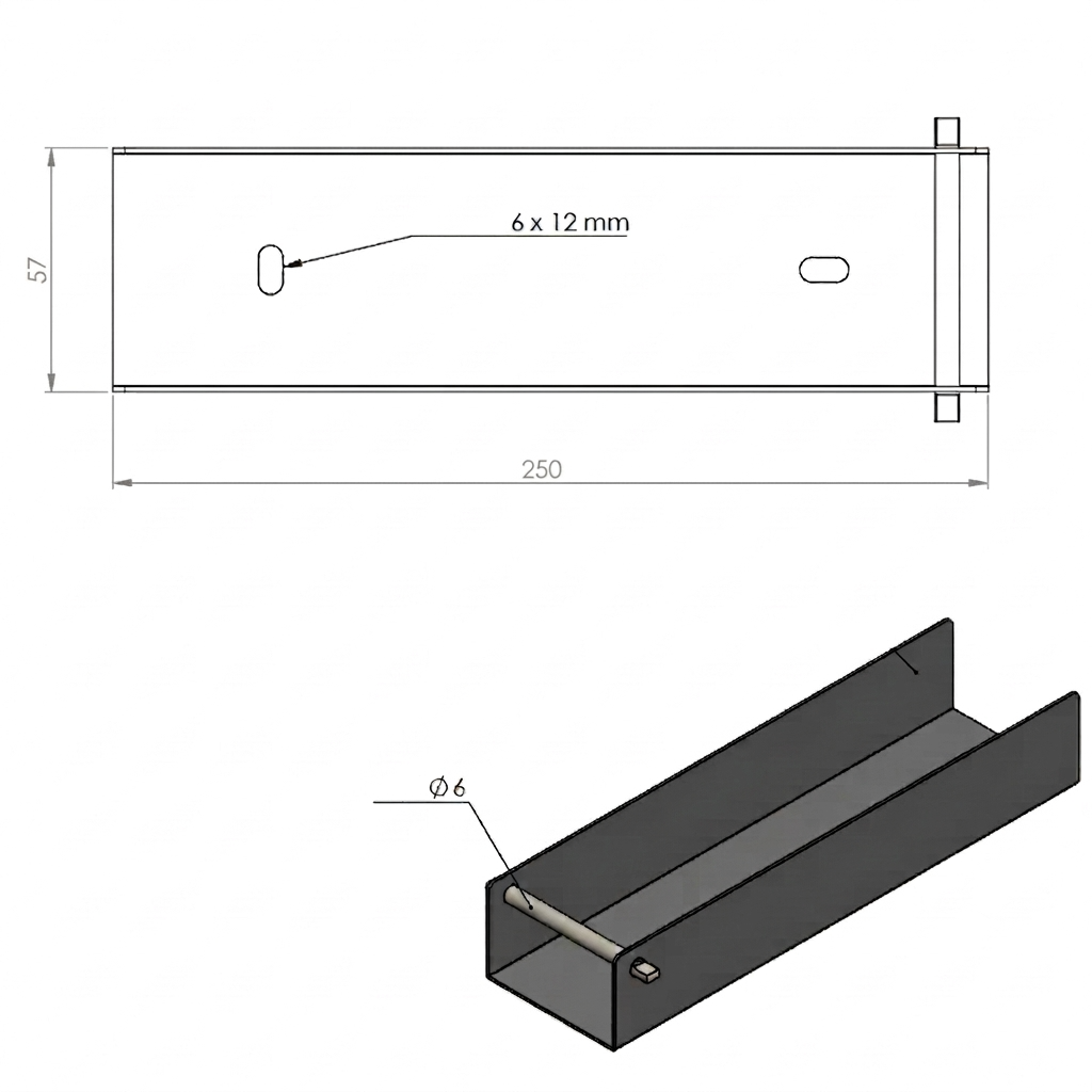 - Trous de montage : 2 pcs — haricots 6 × 12 mm